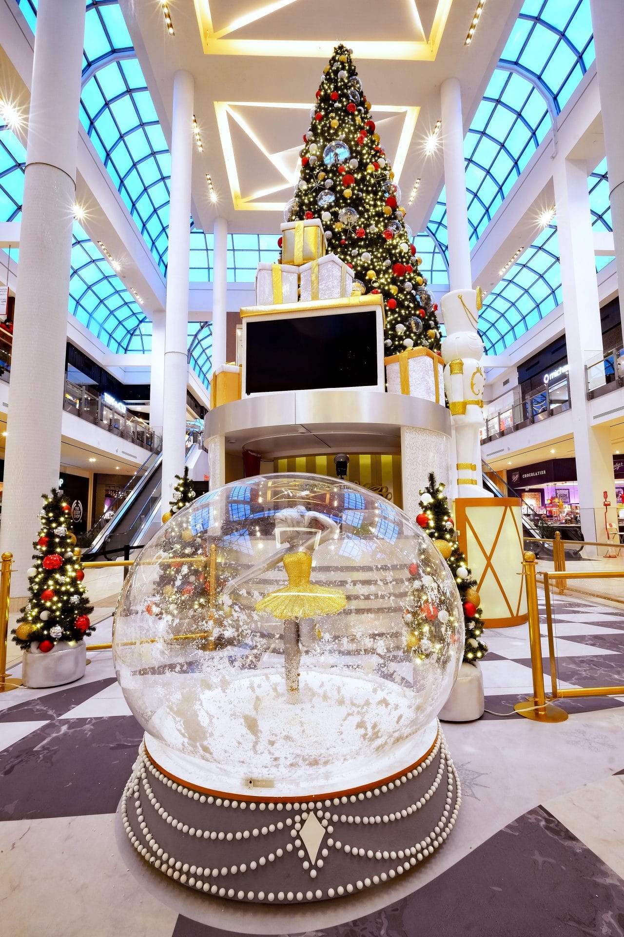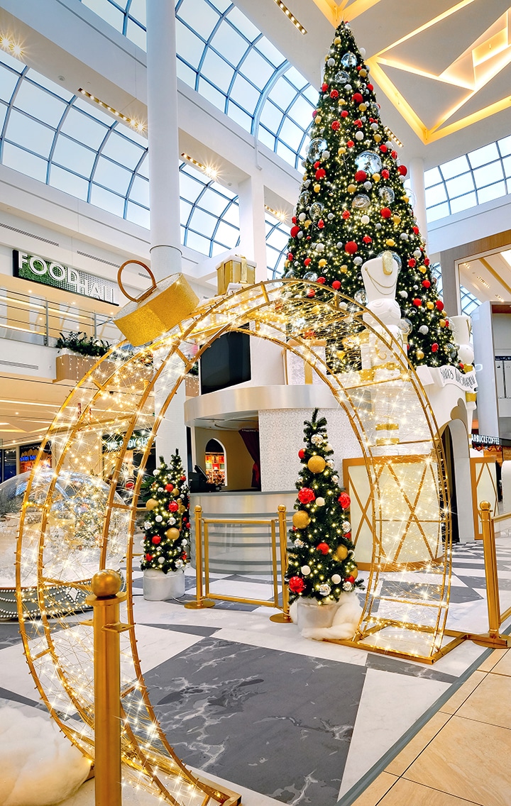 Aventurez-vous dans un concept éclectique inspiré de l’Art Nouveau. S’adressant à un marché haut de gamme, les couleurs monochromes alliant le doré, l’argenté, le champagne et le blanc offrent un design sophistiqué. Alors que le parloir du Père Noël accueille le sapin géant s’élevant à plus de 35 pieds de hauteur; la ballerine tournoyant dans sa boule translucide offre un splendide spectacle alors qu’un blizzard de neige s’active chaque fois qu’un enfant fait un voeu!